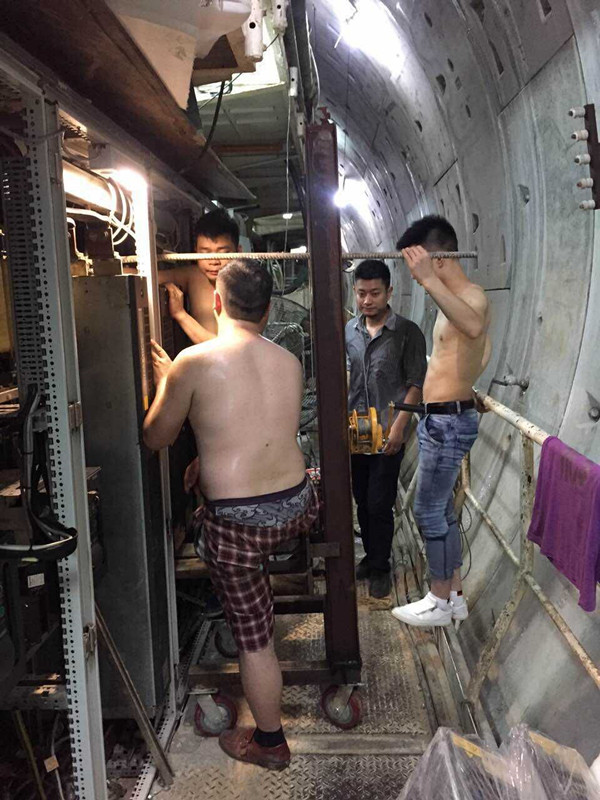 暴雨过后,凯德技术人员克服高温、闷热影响,紧急对地铁盾构设备进行维护。